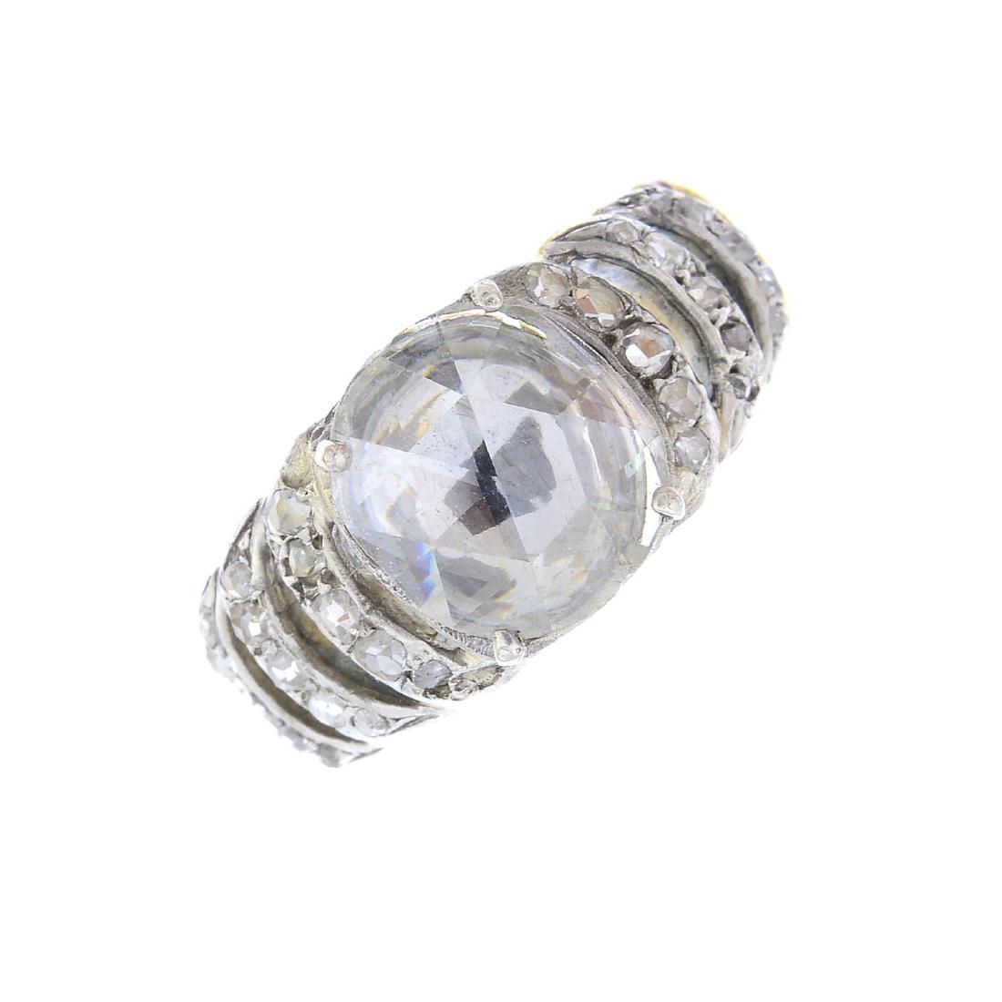 A diamond single-stone ring. The rose-cut diamond, with