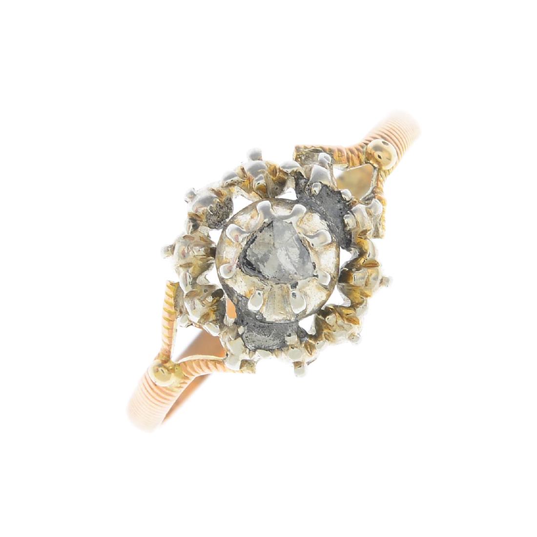 A diamond single-stone ring. The rose-cut diamond,