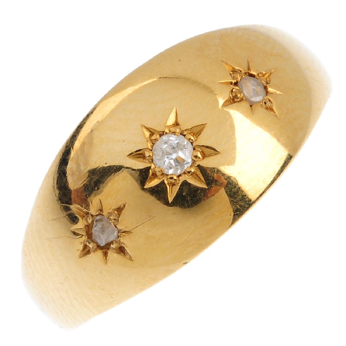 A diamond three-stone ring. The old and rose-cut