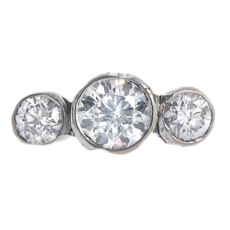 A diamond three-stone single ear stud.