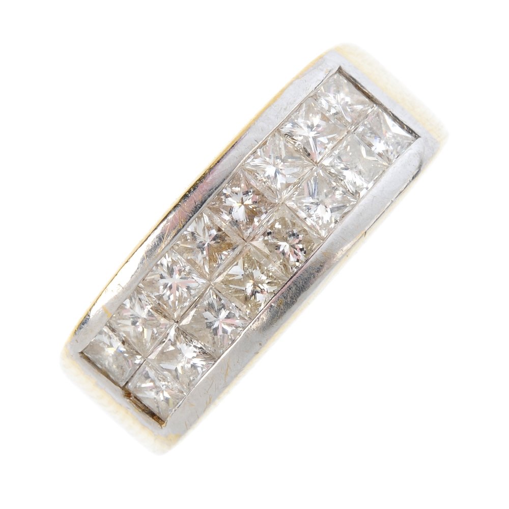 A diamond two-row band ring. Designed as two