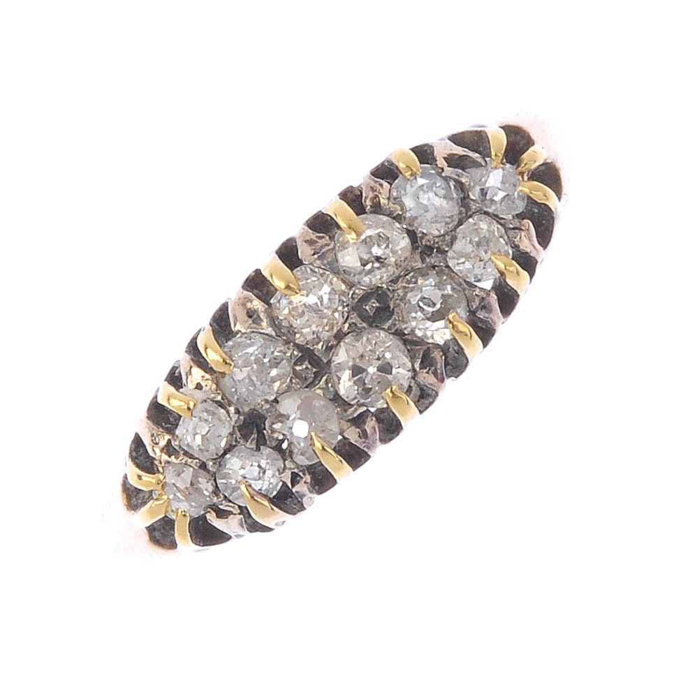 A diamond two-row ring. Designed as two lines of