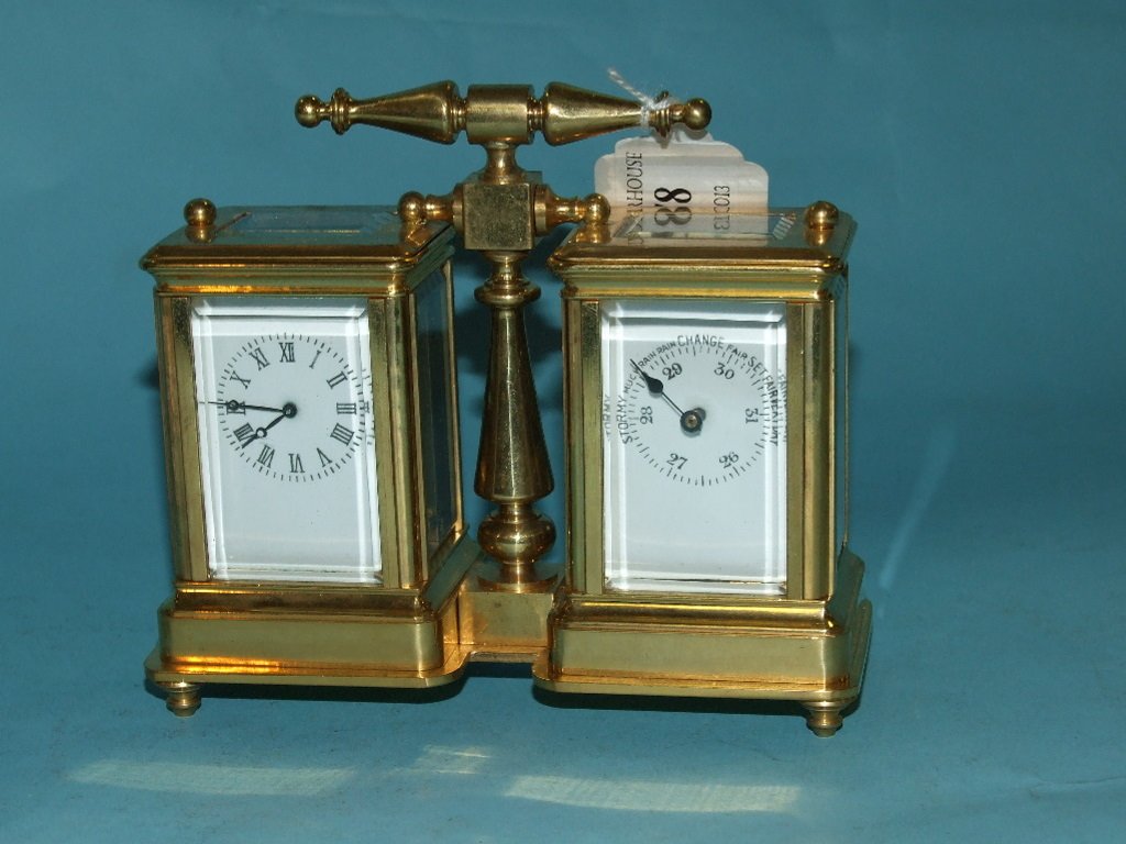 A double carriage style timepiece and barometer, 10.5