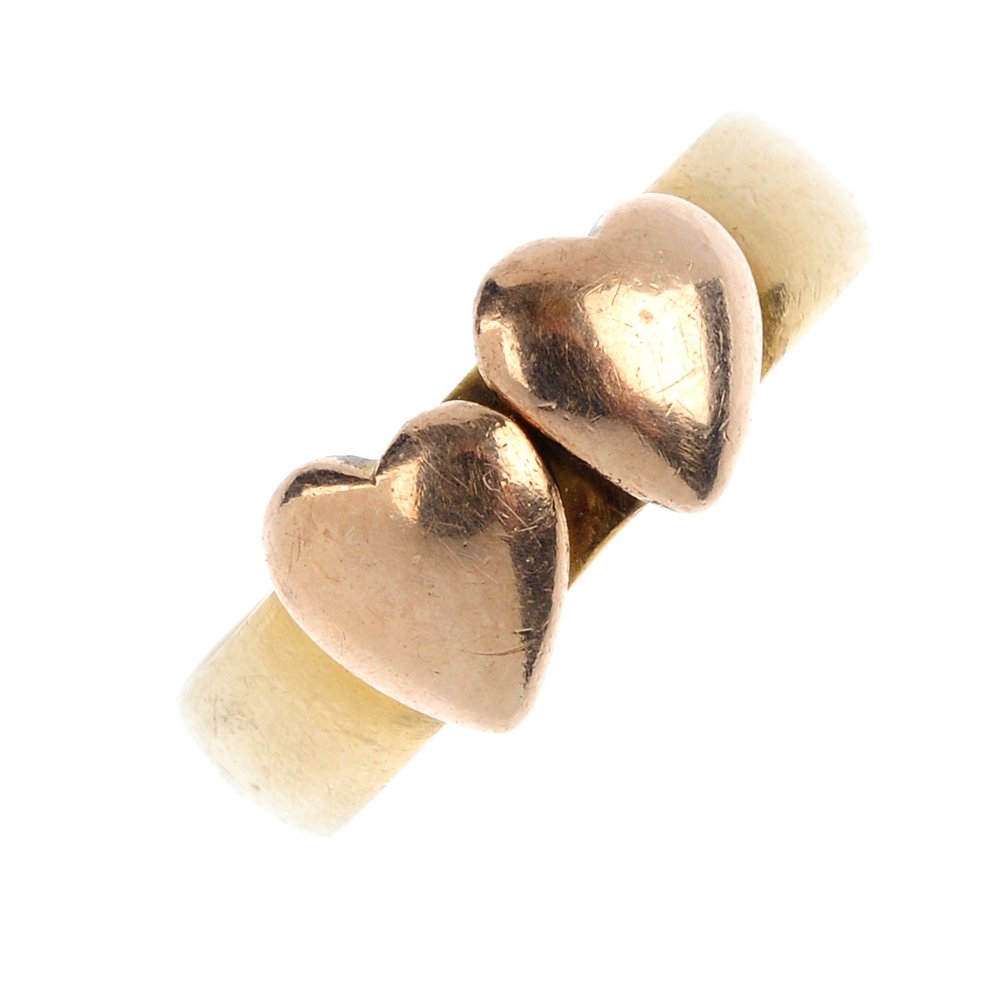 A double heart band ring.