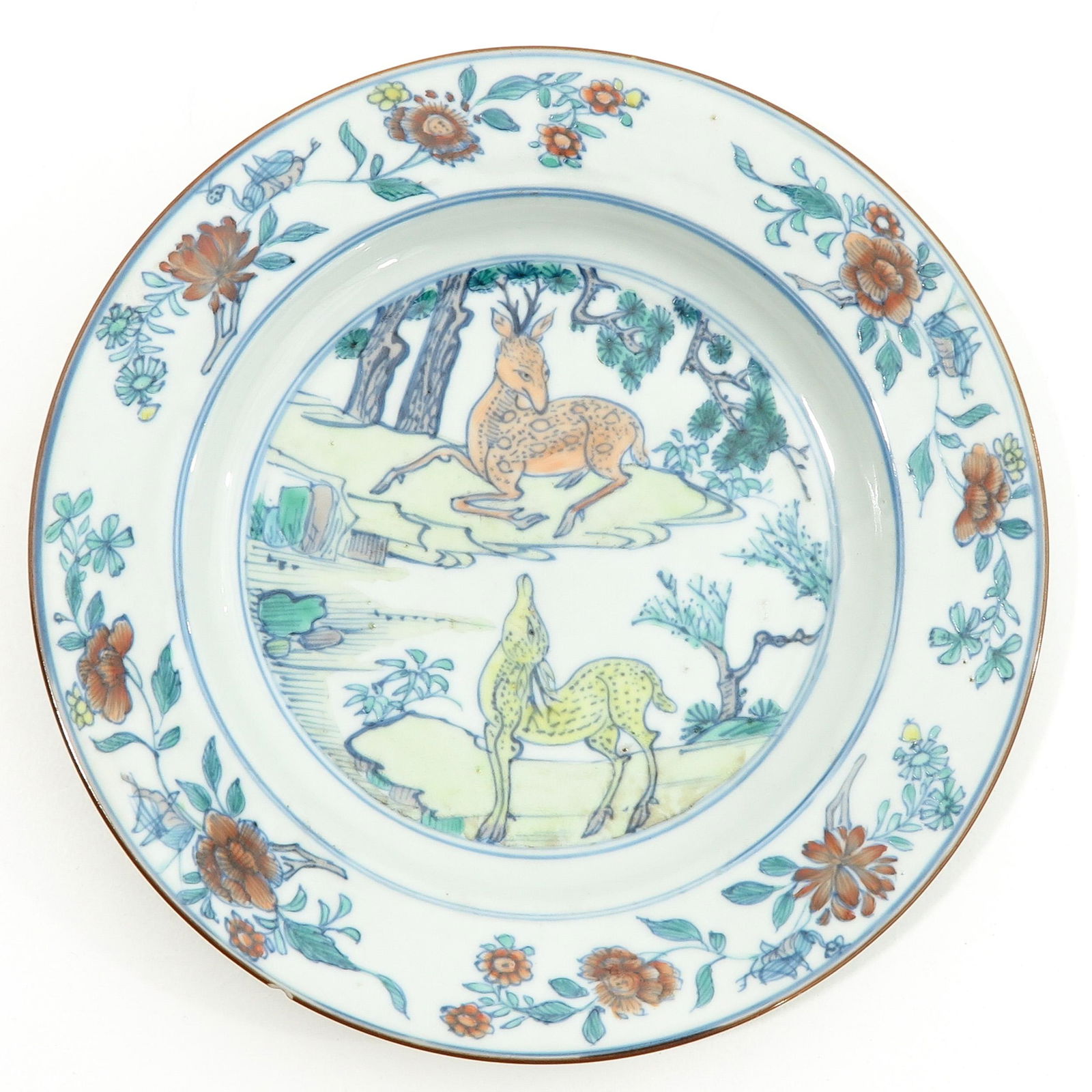 SoldA Lot of 2 PlatesIncluding Famille Rose and Doucai decor plate, largest plate is 23 cm. in diameter, chip and hairline.See Sold Price