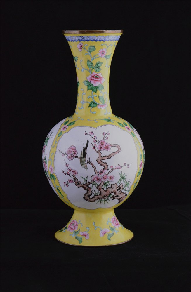 A ENAMEL FLORAL DESIGN VASE
