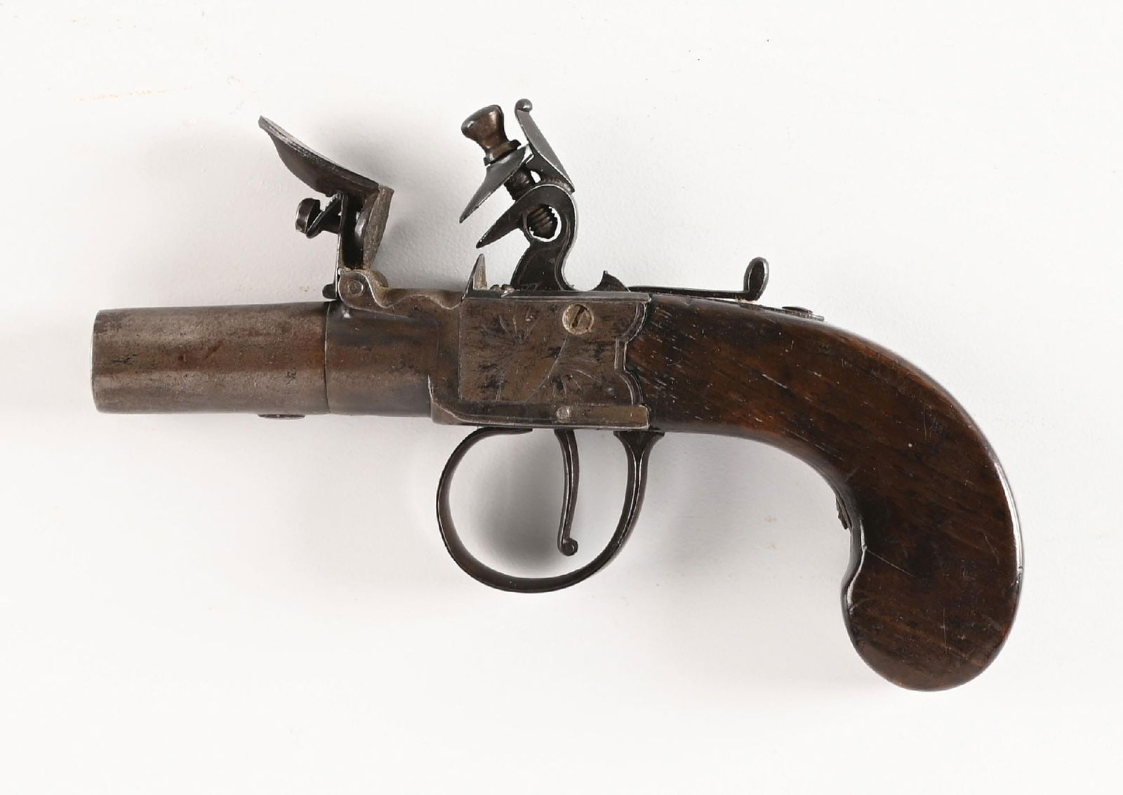 (A) ENGLISH FLINTLOCK MUFF PISTOL.