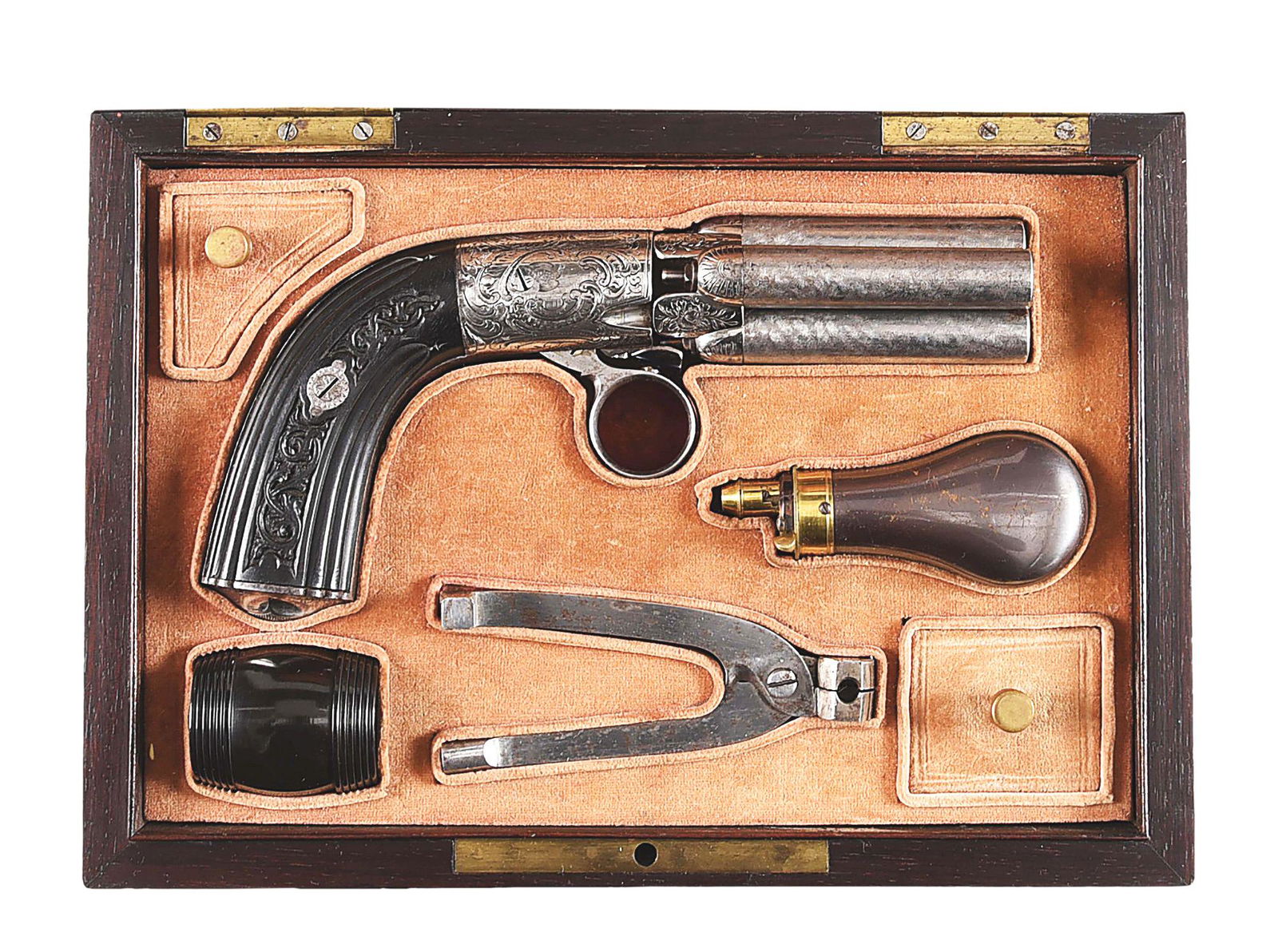 (A) EXCEPTIONALLY FINE CASED MARIETTE PEPPERBOX PISTOL.