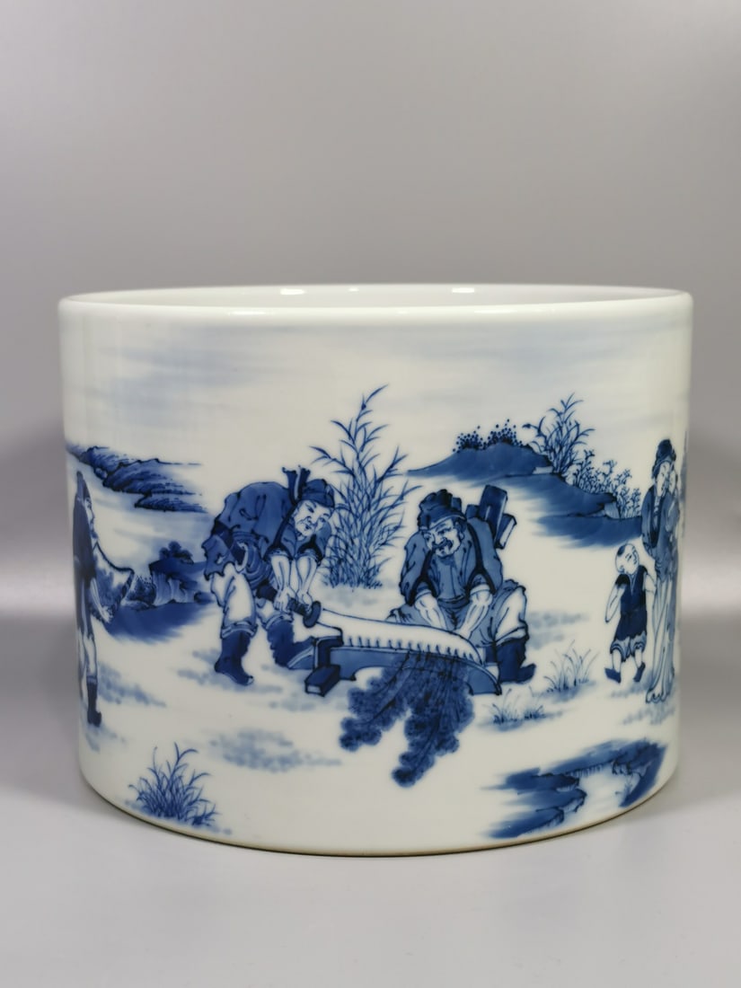 A Exquisite Blue and White Figures Pattern Brush Pot