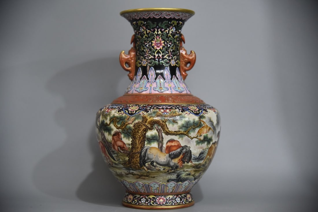 A Exquisite Enamel Horse Pattern Vase