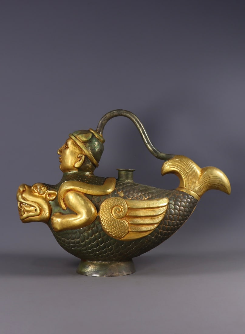 A Exquisite Gilded Fish-shaped Ewer
