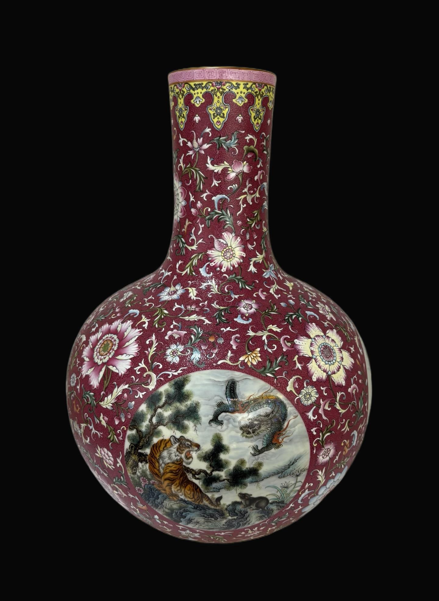 A Exquisite Ruby Red Ground Auspicious Beast Pattern Vase