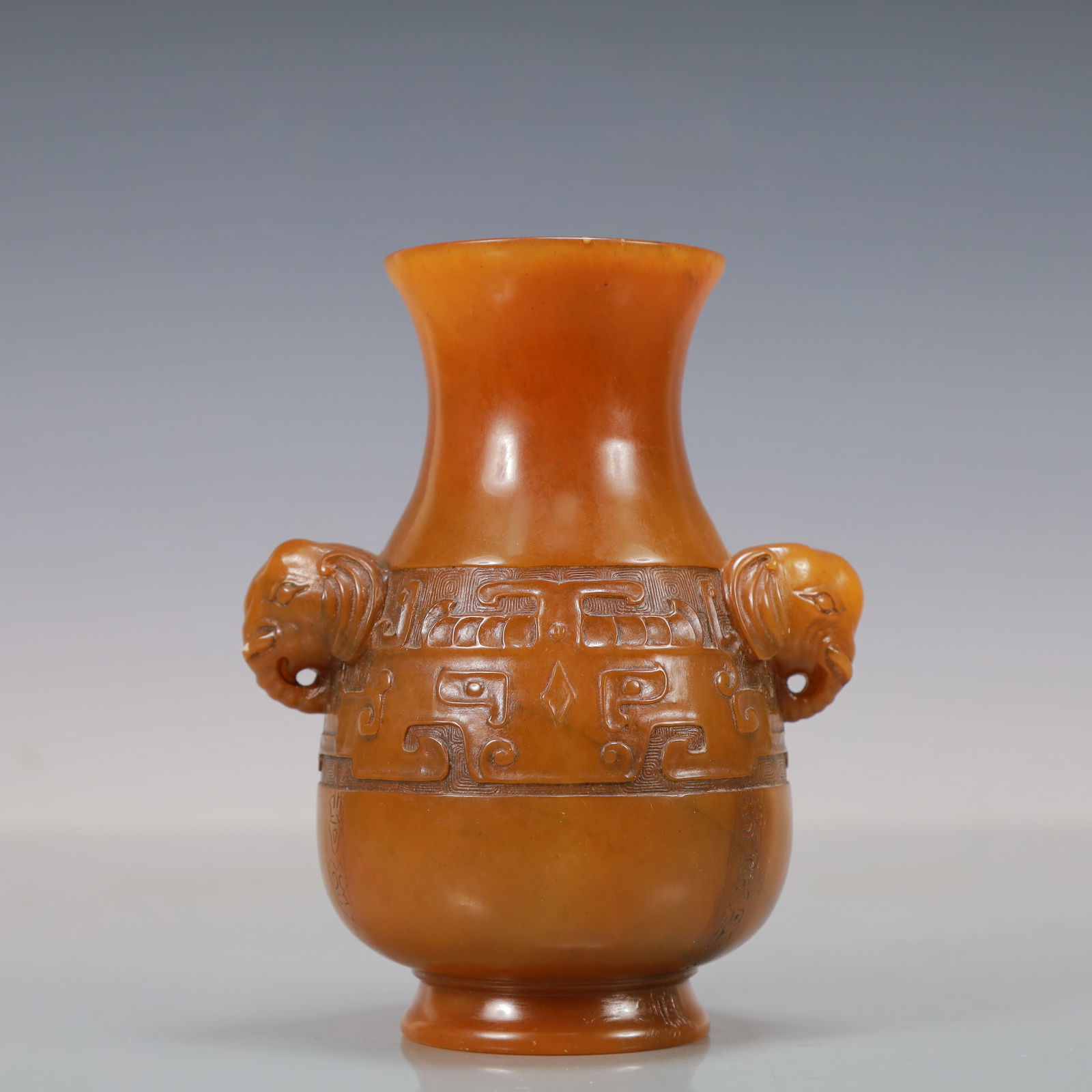 A Exquisite Shoushan Stone Beast-Face Pattern Elephant-Ears Vase