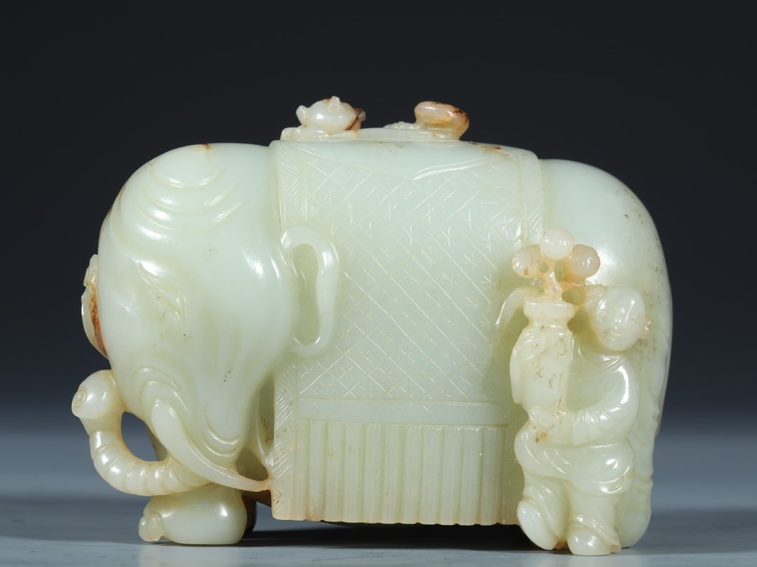 A Exquisite White Jade Elephant Ornament