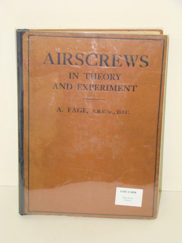 SoldAirscrews in Theory and Experiment by A. Fage - 1920Great condition. Cover protector on and included. Published in 1920 by Constable & Company LTD. Excellent foldouts and illustrations throughout. See photos.See Sold Price
