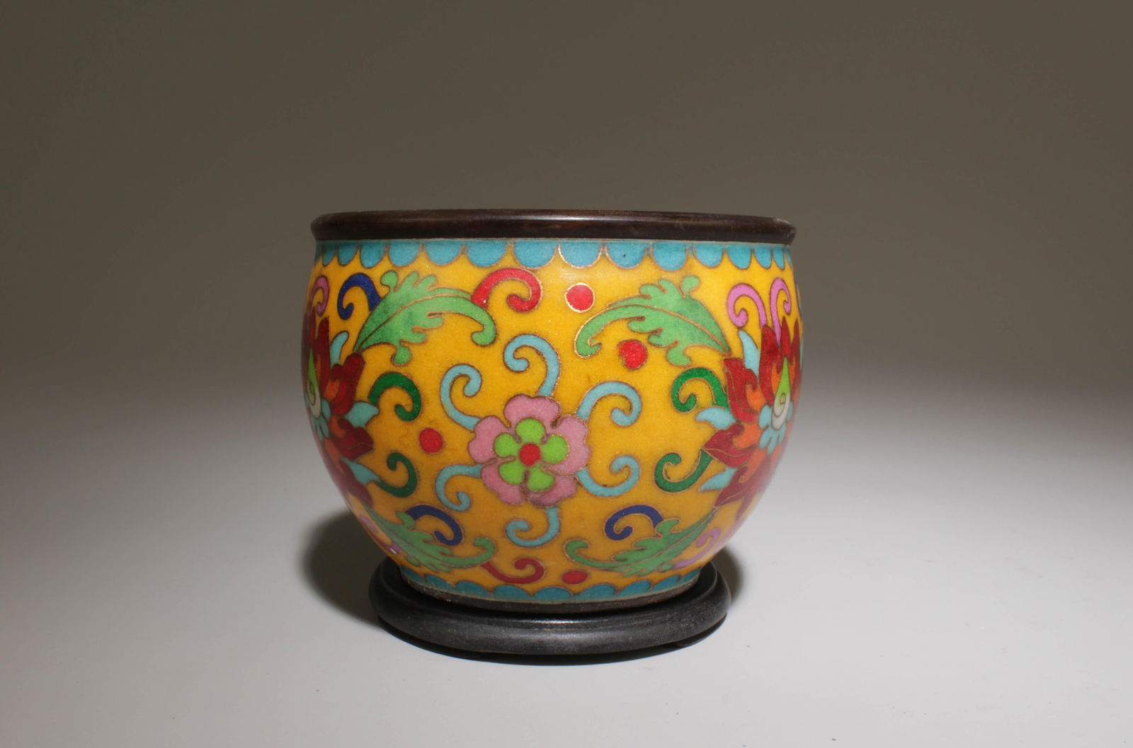 Small cup with antique wooden base and gold-painted lacquerware featuring a lotus scroll design.FC4.1(4)£6003 days Left