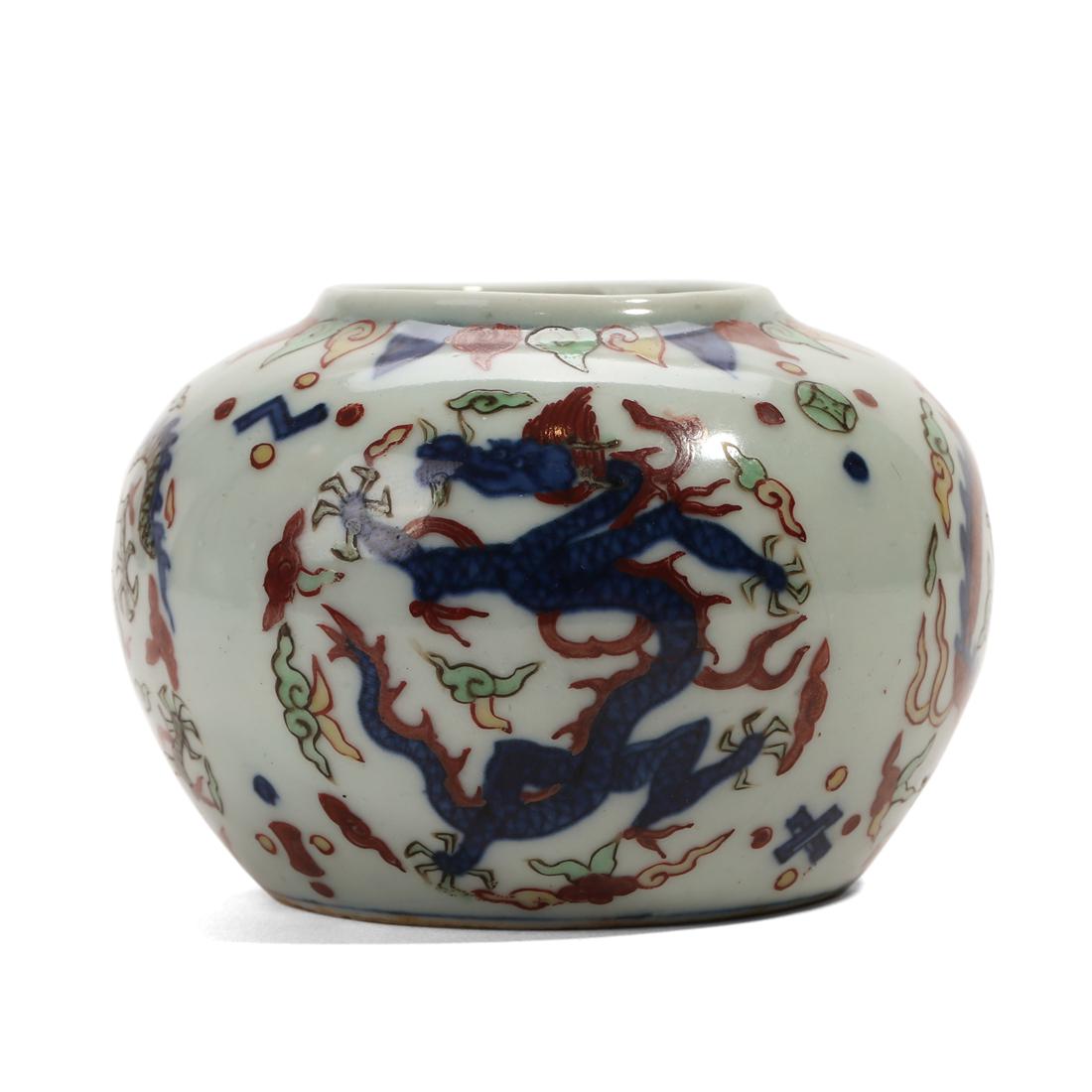 A FAMILLE ROSE 'DRAGON' COVERED TEA BOWL