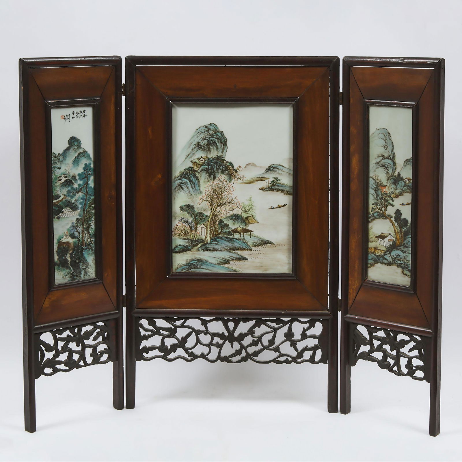 A Famille Rose 'Landscape' Table Screen, Dated 1928, 1928年作