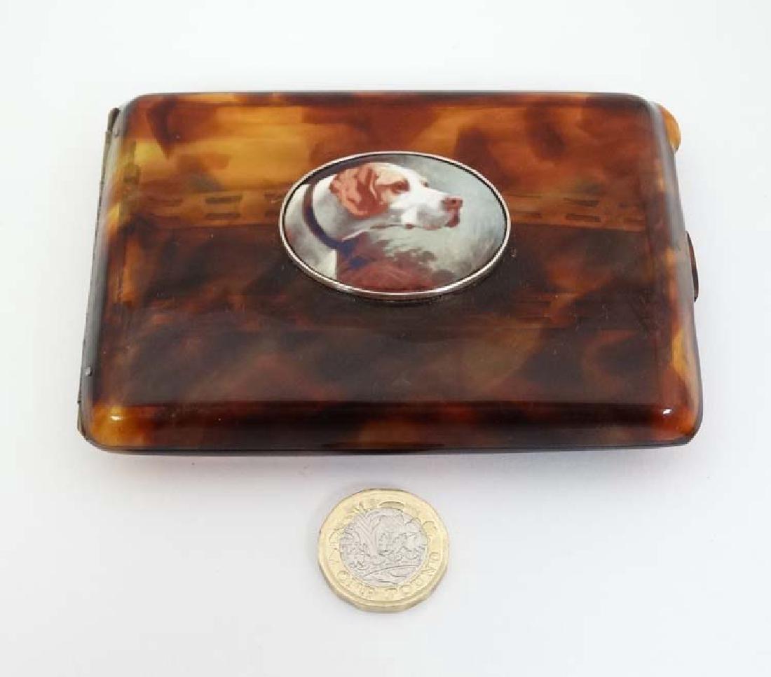 A faux tortoiseshell cigarette case with later applied