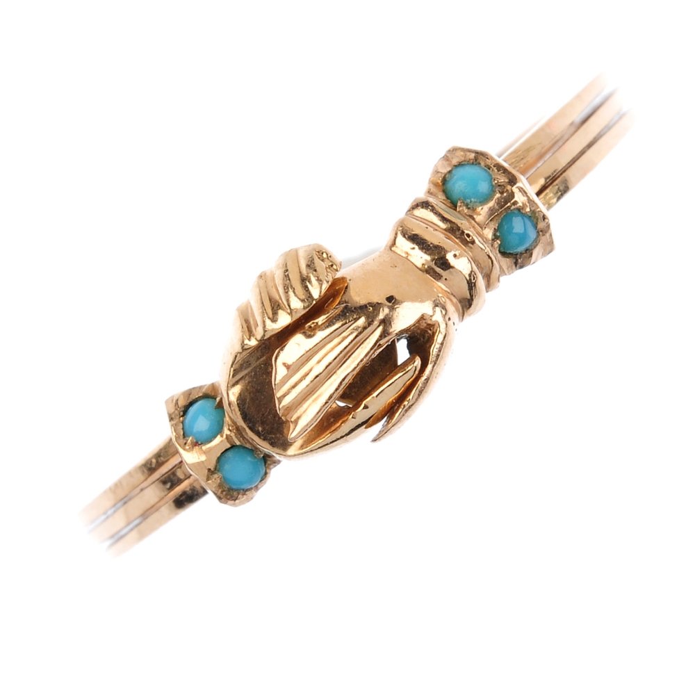 A fede ring. Designed as three riveted bands, closing