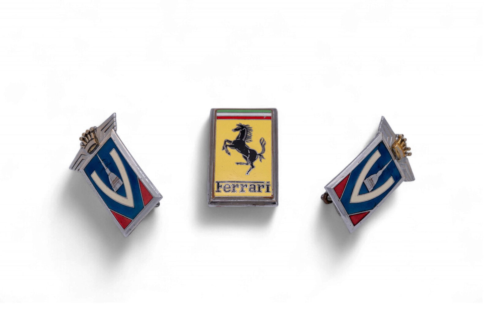 A Ferrari and Vignale badge grouping,