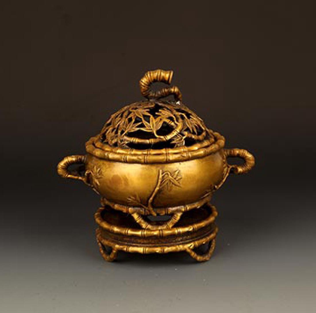 A FINE BAMBOO CARVING BRONZE AROMATHERAPY