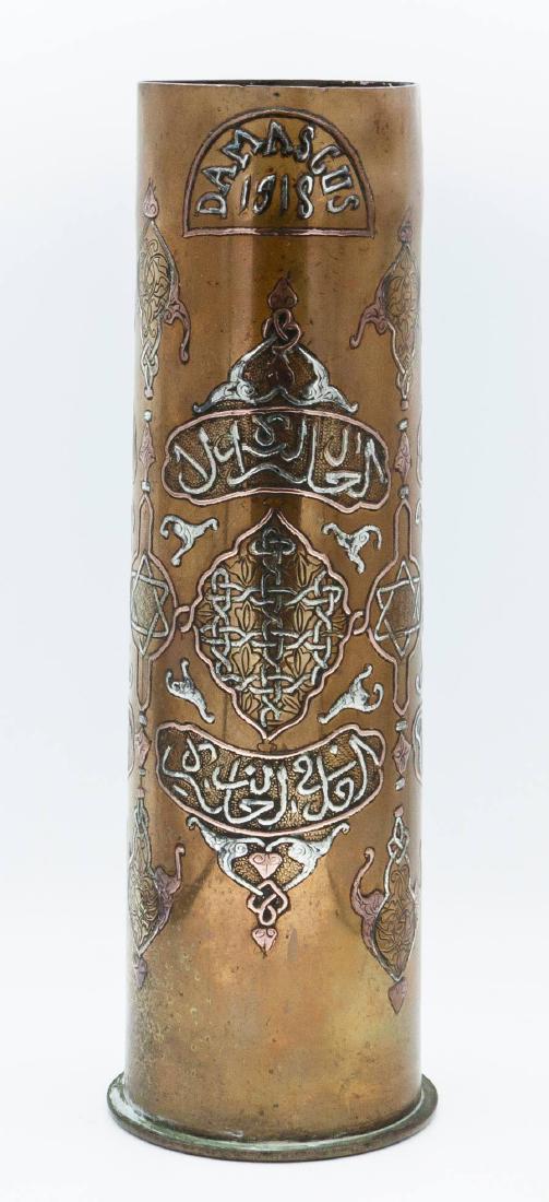 A Fine Brass Silver and Copper Inlay Damascene Shell,