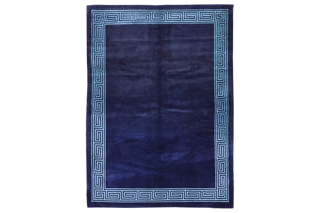 Antique Chinese Art Deco Wool Rug Blue Floral Design 9'1" x 11'6"