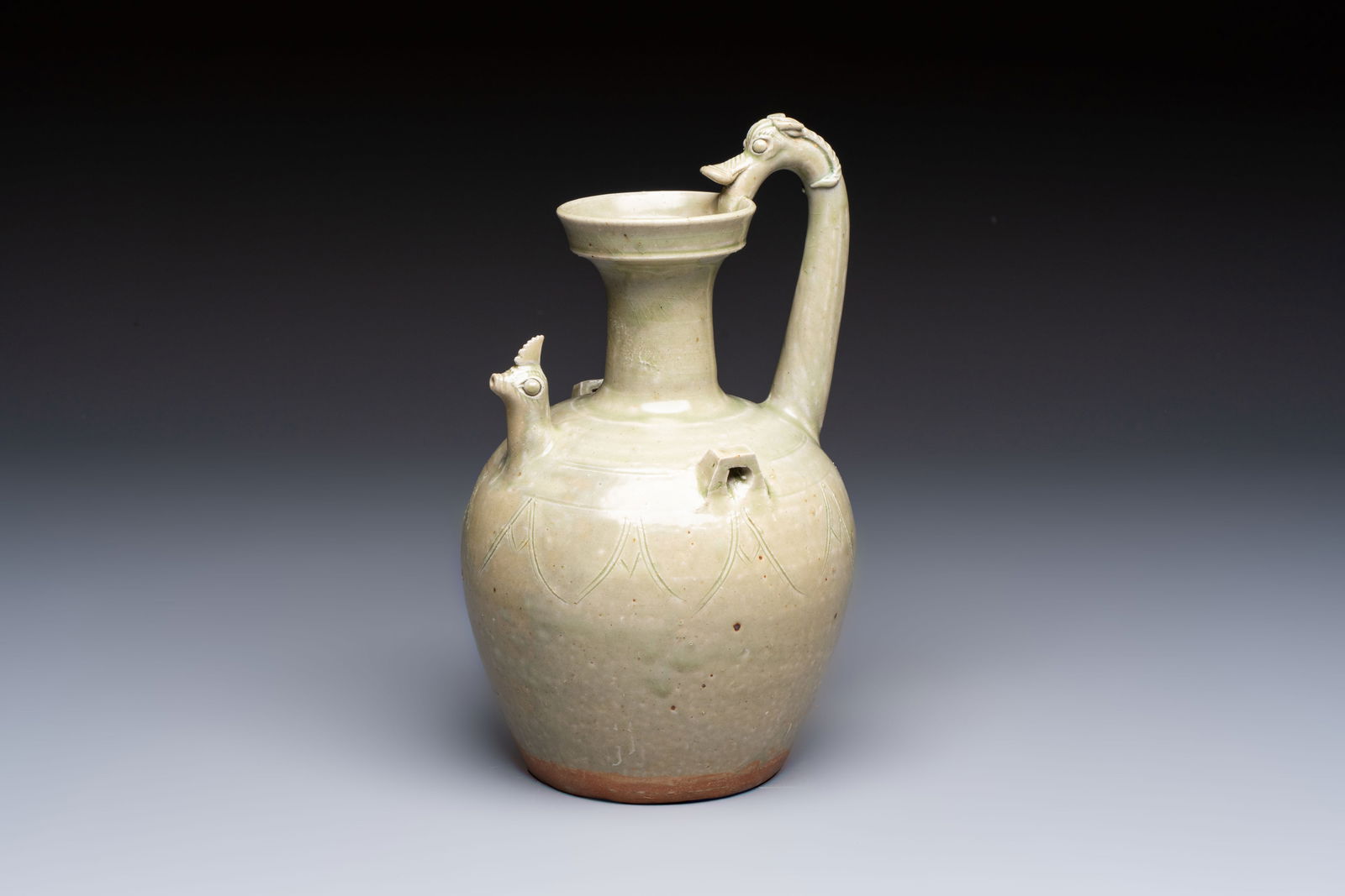 Formerly in the collection of a Song Dynasty Yue ware celadon fish-dragon ewerFCL4.2(3)$6008 hrs Left