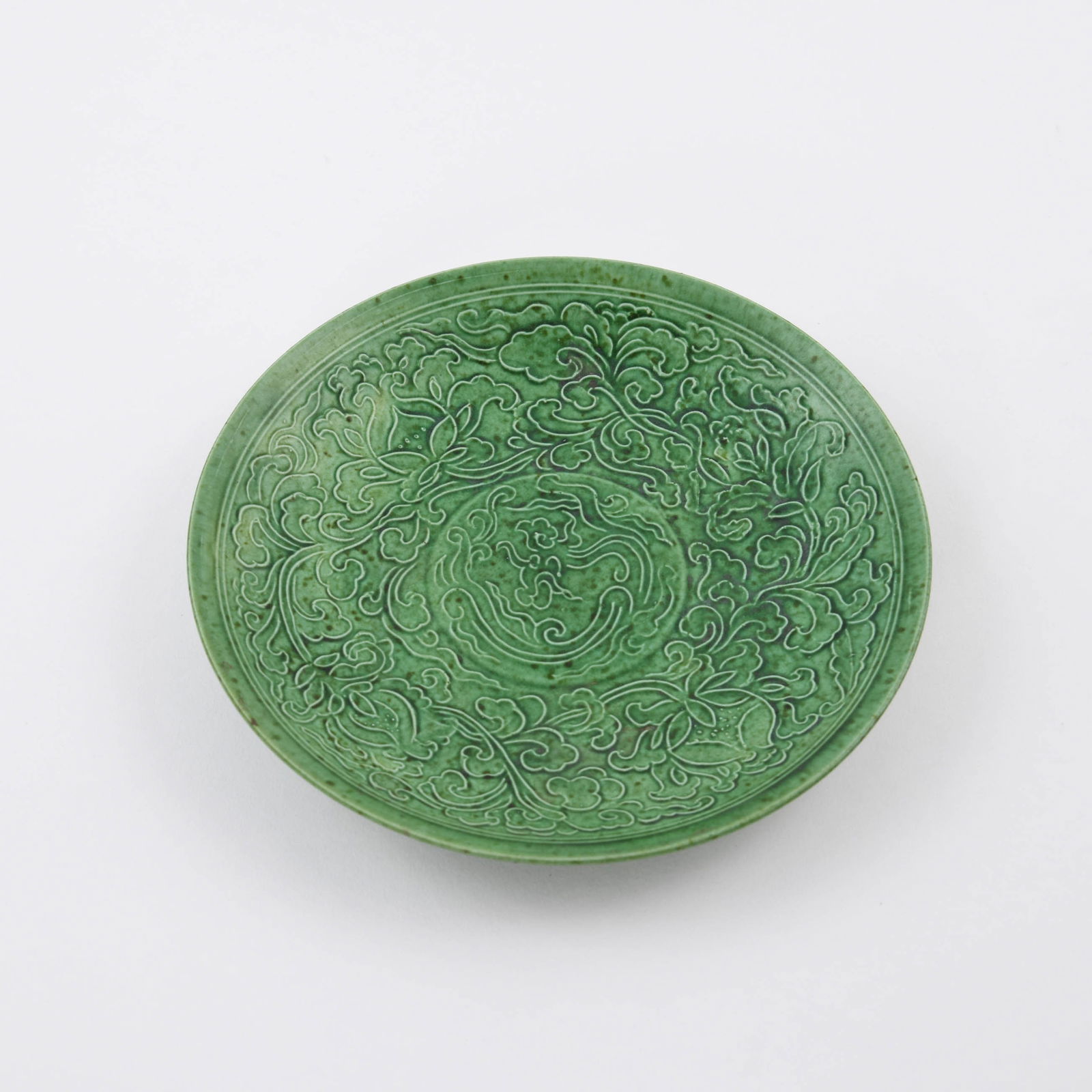 A FINE 'DING' GREEN GLAZE 'LOTUS' DISH