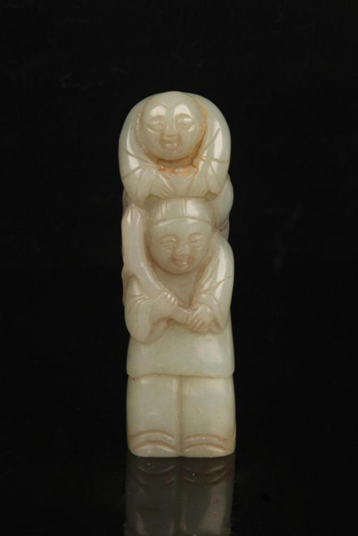 A FINE HUMAN FIGURE PALE CELADON JADE