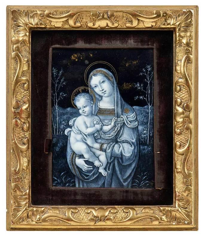 Painted Porcelain Plaque of Madonna & Child