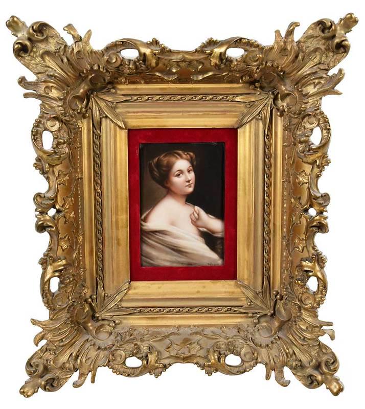 French Hand-Painted Porcelain Portrait Plaque in Gilt Bronze Frame, Signed BizetCoral Gables Auction4.5(634)$1006 days Left