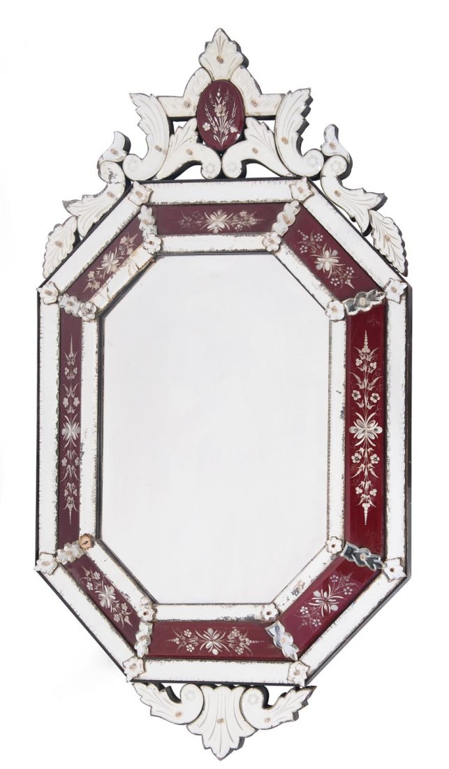 A fine quality ruby and clear glass etched cushion