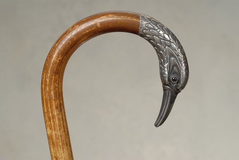A fine silver shore bird cane on malacca