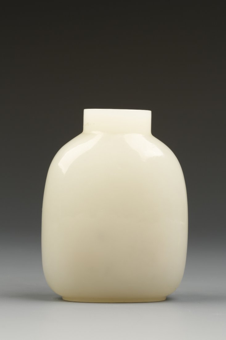 A FINE 'WHITE' JADE SNUFF BOTTLE, the rounded rectangul