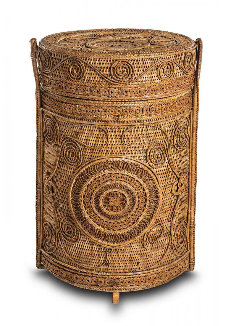 A Fine Wickerwork Circular Basket And Cover With