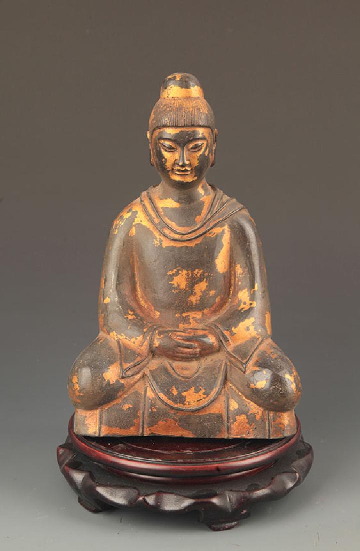 WOODEN LACQUERED AMITABHA BUDDHA STATUE