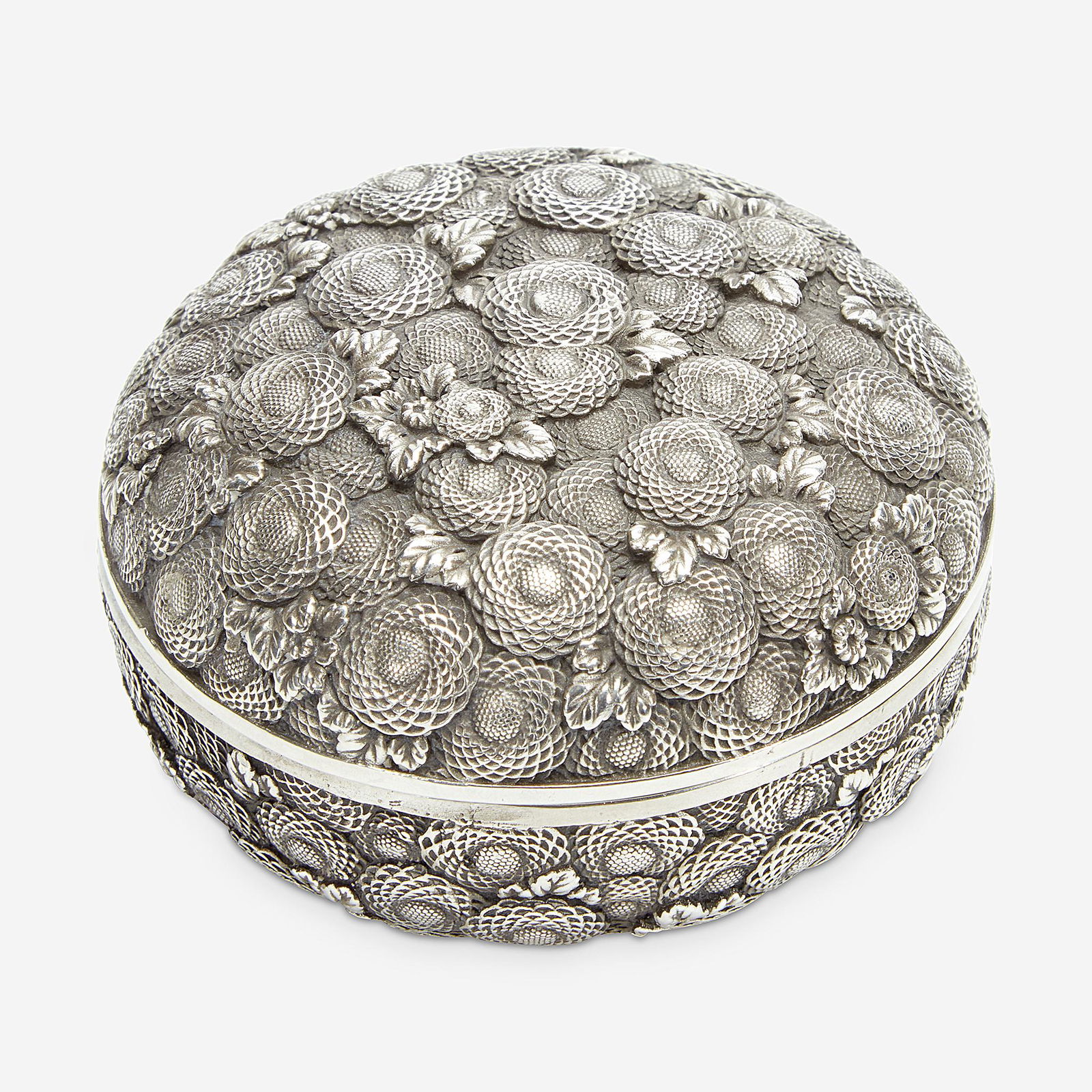 Antique Chinese Silver Octagonal Box, Repousse Floral DecorationMar 21, 2026Shreve Chrysanthemum Sterling Silver Jewelry Case 1 3/4 x 57 days LeftIndo-Persian Silver Covered BoxMar 19, 2026StilArte Silver Laminate Floral Jewelry Box ItalyMar 18, 2026Japanese Mitsukoshi Imperial Silver Bonbonniere BoxMar 21, 2026Antique Continental .800 Silver Dresser BoxMar 28, 2026A YEMENI JEWISH SILVER FILIGREE BESAMIM SPICE BOX3 days LeftAntique Silver Snuff CaseMar 17, 2026Handmade 925 Sterling Silver Modern Hammered Esrog Jewelry Box4 days LeftItalian 925 Sterling Silver Floral Leaf Chased Spice Besamim BoxMar 14, 2026Chinese silversmith. Lidded jar richly decorated in relief with flowers and ornaments.Korean .990 Silver Relish Dish with Chrysanthemum Motif and Gilt Finial573 Lots AwayKorean .990 Silver Relish Dish with Chrysanthemum Motif and Gilt FinialMar 11, 2026Handcrafted 925 Sterling Silver Modern Hammered Esrog Jewelry BoxMar 15, 2026Handmade 925 Sterling Silver Floral Leaf Esrog Box 5.5" x 6"6 days LeftHandmade 925 Sterling Silver Multi Floral Esrog Box 5.5 x 8 InchesMar 14, 2026