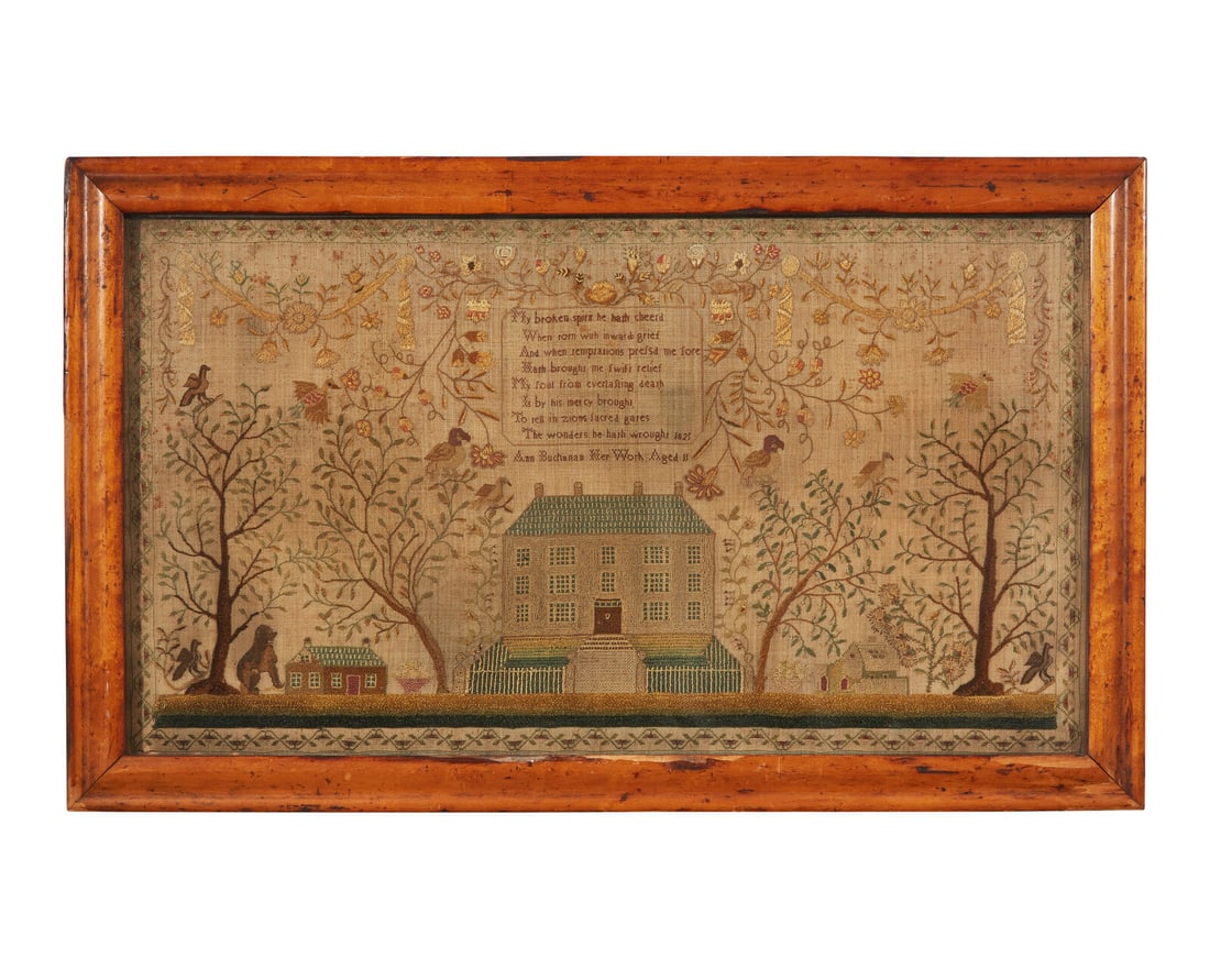 A finely worked needlework sampler, by Ann Buchanan, dated "1821"