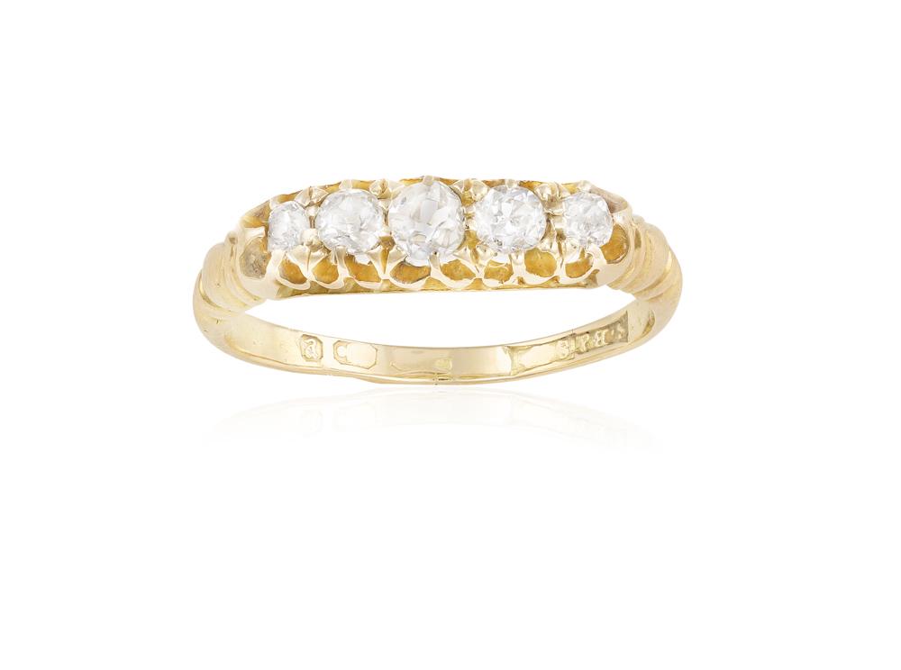 A FIVE-STONE DIAMOND RING, composed of five graduated