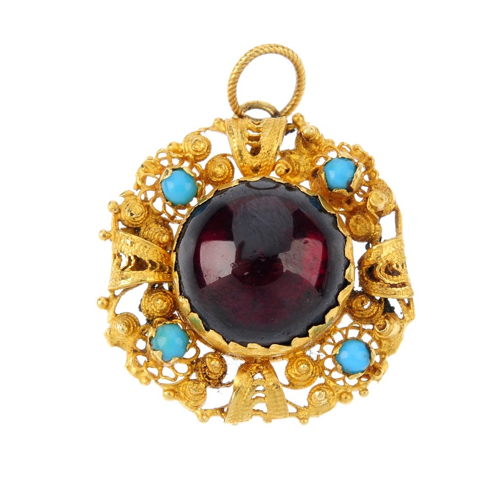 A foil-back garnet and paste pendant. The circular