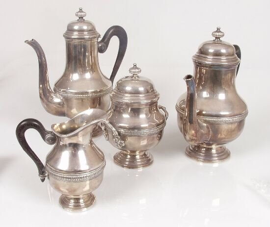 Lot Silver Plate Items1 day LeftSTAFFORDSHIRE TRANSFER-PRINTED CERAMIC DRINKING ARTICLES, LOT OF FOUR2 days LeftENGLISH BRUSH STROKE DRINKING ARTICLES, LOT OF FOUR2 days LeftASSORTED SIGNED PEWTER TABLE ARTICLES, LOT OF SIX3 days LeftPRESSED LACY CALIFORNIA COVERED SUGARS AND CREAMER, LOT THREE2 days LeftSTAFFORDSHIRE BLUE TRANSFER-PRINTED CERAMIC COFFEE POTS, LOT OF FIVE2 days LeftENGLISH GLAZED BLACK BASALT STONEWARE COFFEE AND TEA ARTICLES, LOT OF 142 days LeftENGLISH SILVER LUSTRE CERAMIC TEA AND COFFEE ARTICLES, LOT OF SIX1 day LeftENGLISH RELIEF-MOLDED STONEWARE JUGS AND OTHER RELATED ARTICLES, LOT OF EIGHT2 days LeftA FOUR-PIECE SILVER 'BAMBOO' TEA AND COFFEE SERVICE, MARK OF ZEE WO, SHANGHAI, CIRCA 1870-1925Mar 11, 2026Antique English Sterling Silver Tea & Coffee Set – Made for John Wanamaker, 2365gE.G. WEBSTER & SON SILVER-PLATED FIVE-PIECE COFFEE AND TEA SERVICE1 day Left4-piece Coffee and Tea Set in Biedermeier StyleMar 20, 2026Gorham Plymouth Sterling Silver Coffee & Tea SetMar 19, 20264 Piece Silver Plate Tea Set1 day LeftENGLISH SILVER LUSTRE CERAMIC TEA AND COFFEE 21-PIECE PARTIAL SET1 day Left
