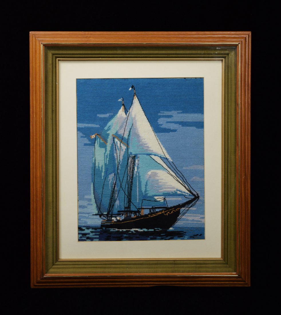 A Framed Cross Stitch Work "Sailboat"