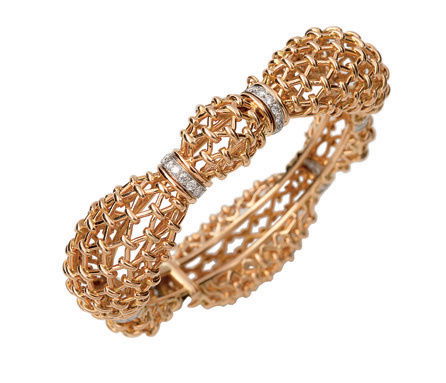 DORIS PANOS DIAMOND 18K YELLOW GOLD 5MM WIDE FANCY HINGE BANGLEModern Jewelry4.4(204)See Sold PriceJul 13, 2025