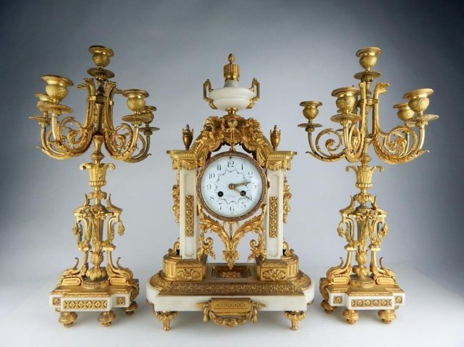 (3) FRENCH LOUIS XVI STYLE ORMOLU-MOUNTED MARBLE CLOCK & CANDELABRA GARNITURE SETAustin Auction Gallery4.7(1.2k)$1,5003 days Left