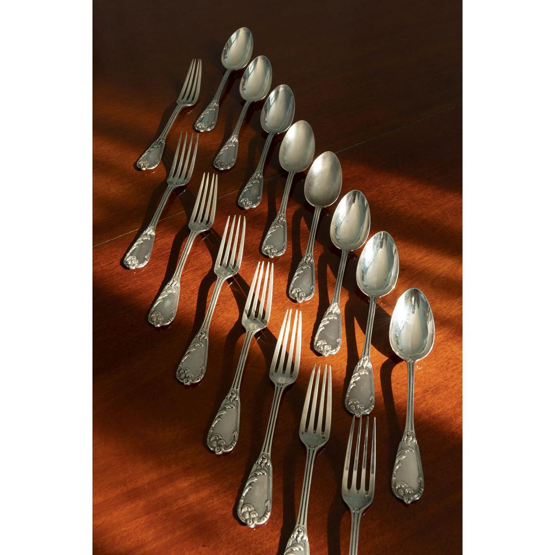 A French silver part service table, comprising twelve