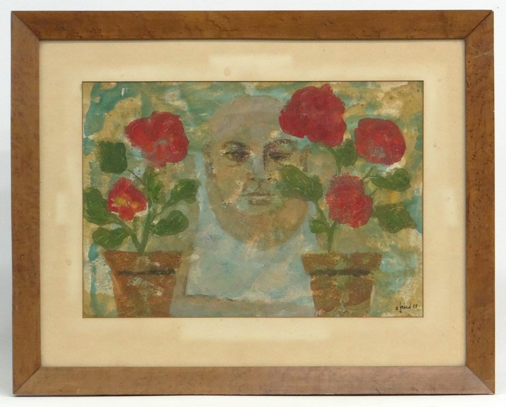 SoldA. Fried, WatercolorA. Fried, watercolor, figure with plants. Signed LRC "A. Fried '58". Sight 16" x 22 1/2".See Sold Price