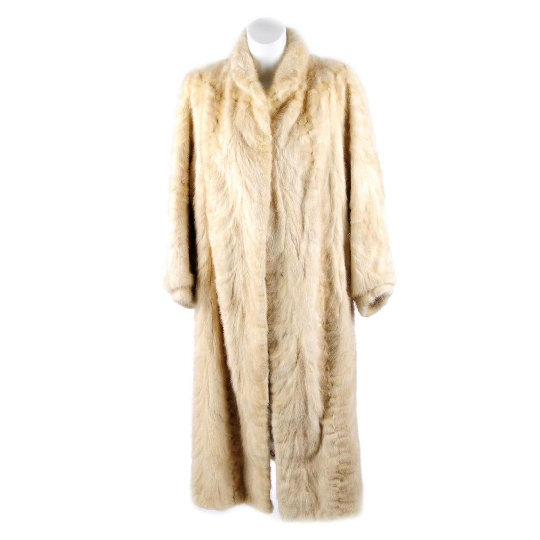 A full-length pieced pearl mink coat. Designed with a