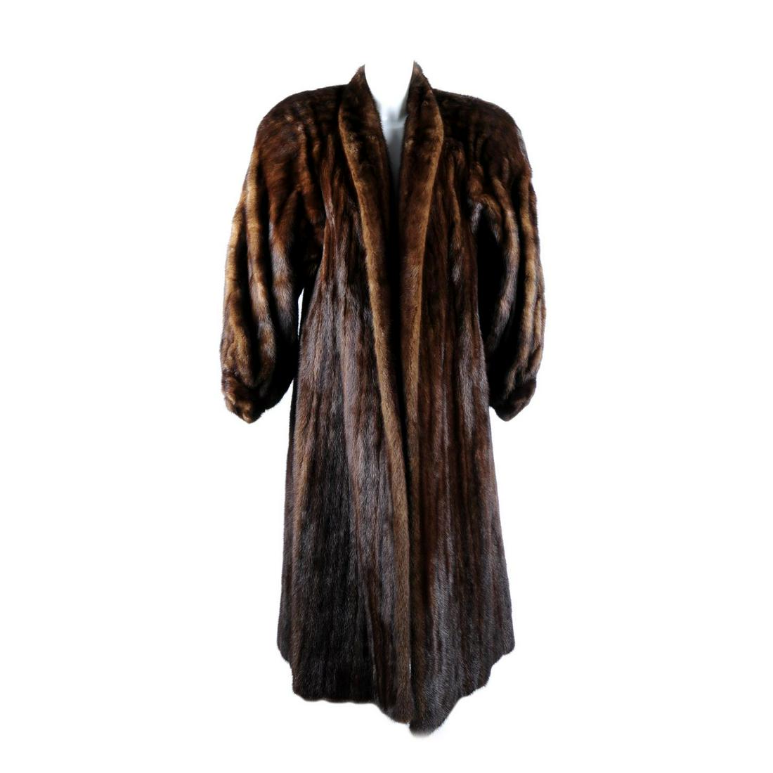 A full-length ranch mink coat. Designed with a short